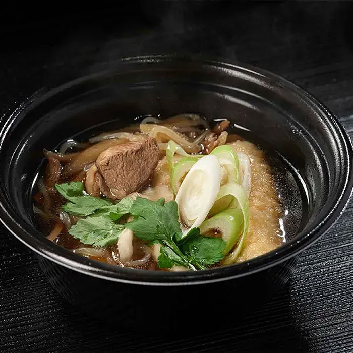 つゆ(しょうゆ(国内製造)、鶏ガラ、酒精、みりん、食塩)、糸こんにゃく、鶏肉(秋田県産、比内地鶏100%)、ごぼう、舞茸/調味料(アミノ酸等)、水酸化カルシウム、(一部に大豆・小麦・鶏肉を含む)