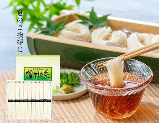 600年続く伝統製法で作られたそうめんは、どなたにでも喜んでいただける夏の定番ギフトです。