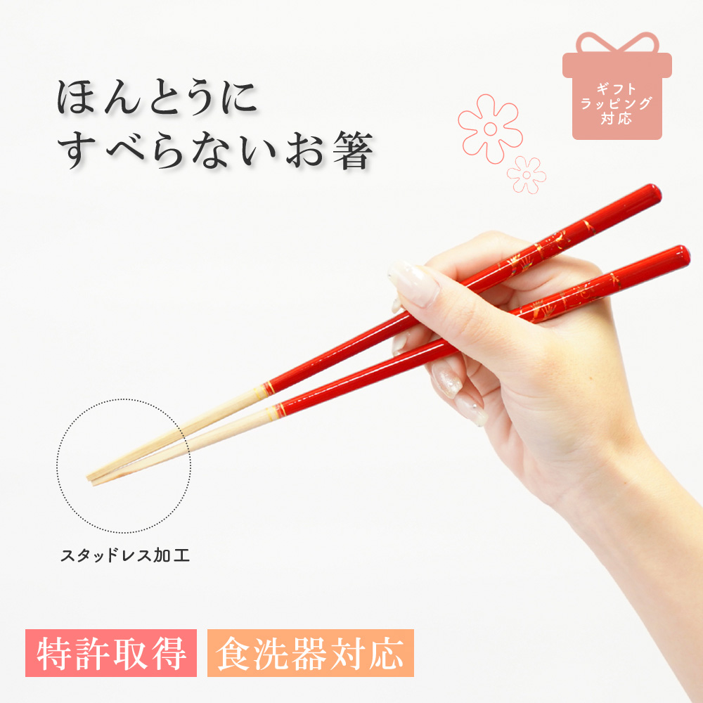 【2点200円OFFクーポン】 ほんとうにすべらないお箸 特許取得 スタッドレス加工で麺類もつまみやすい 食洗機対応 滑り止め強化 軽量 子供 大人 18cm 21cm 23cm