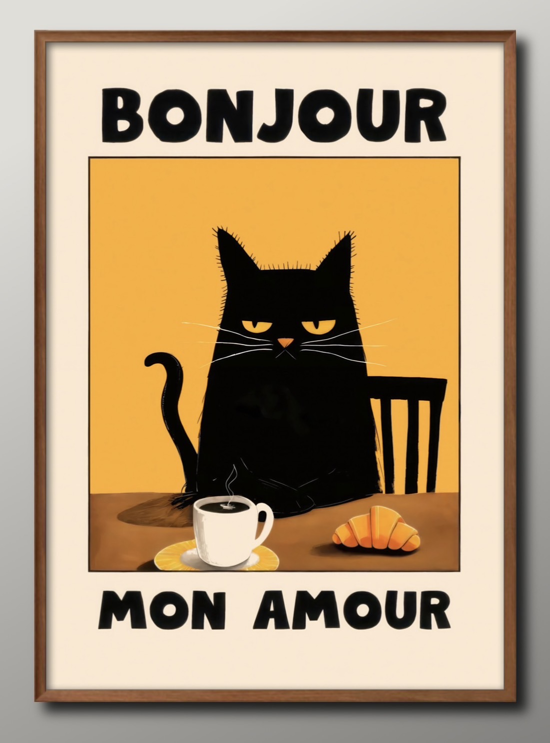 ポスター 黒猫 ネコ コーヒータイム BONJOUR MON AMOUR 絵画 インテリア A3サイズ アート 新築祝い ギフト 模様替え 北欧 マット紙15894