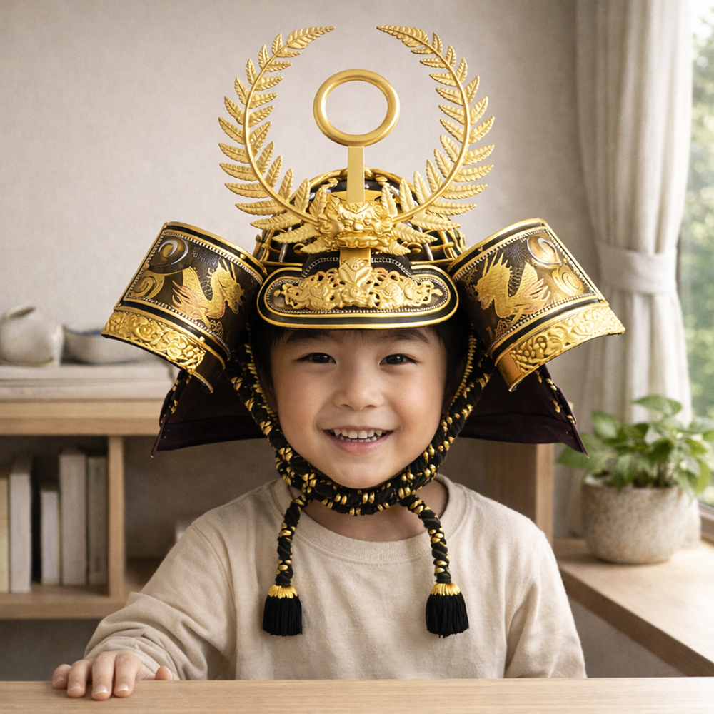 実際にお子様がかぶる事ができる「かぶれる兜」ですので、こどもの日の記念写真にどうぞ。30号