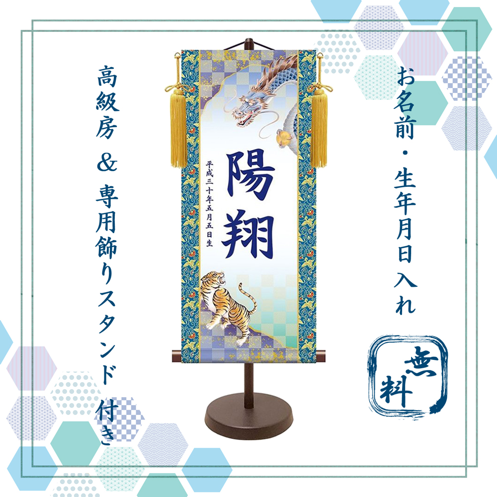 名前旗・名入れ掛け軸 端午の節句 龍虎(小) スタンド付き・納期約2週間(YTB-003S)