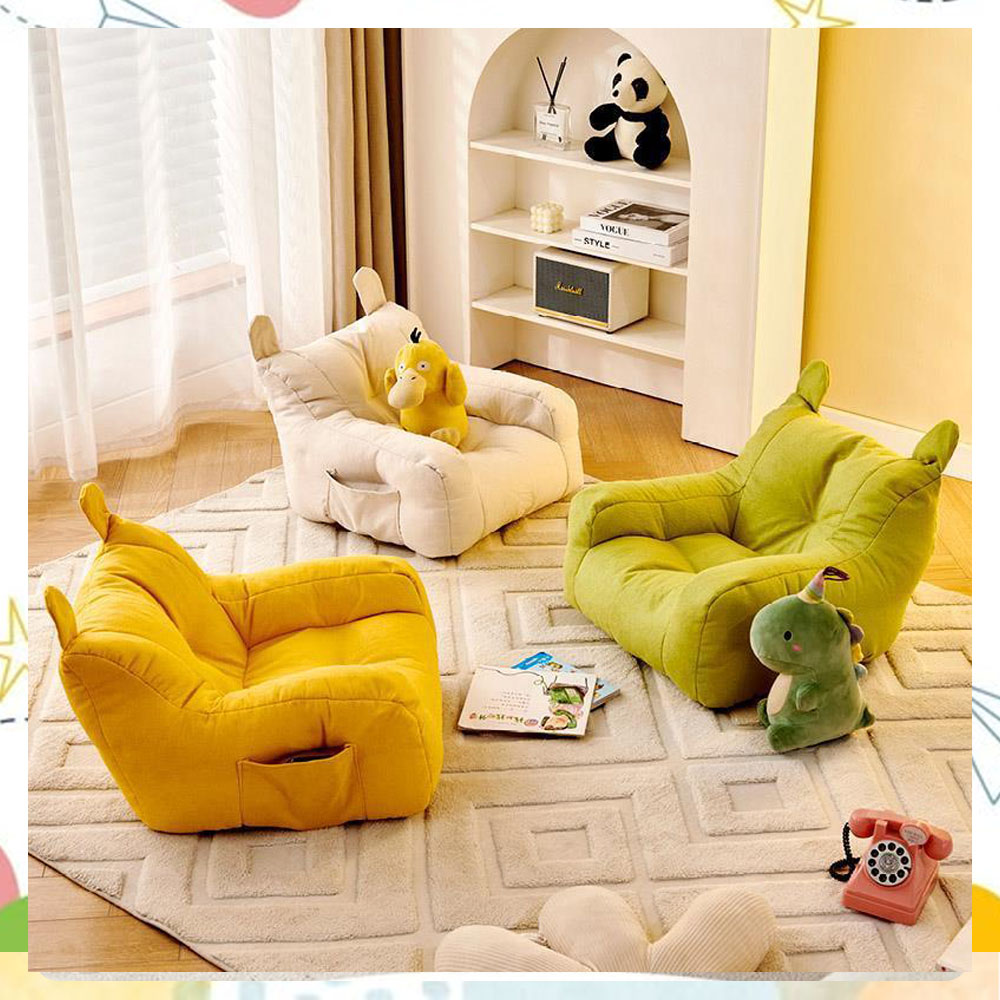 王様のような存在感!見た目も可愛らしく、子ども部屋にぴったりなビーズクッションソファ。お子さまが「自分だけの席」として誇らしく感じられるサイズ感です。