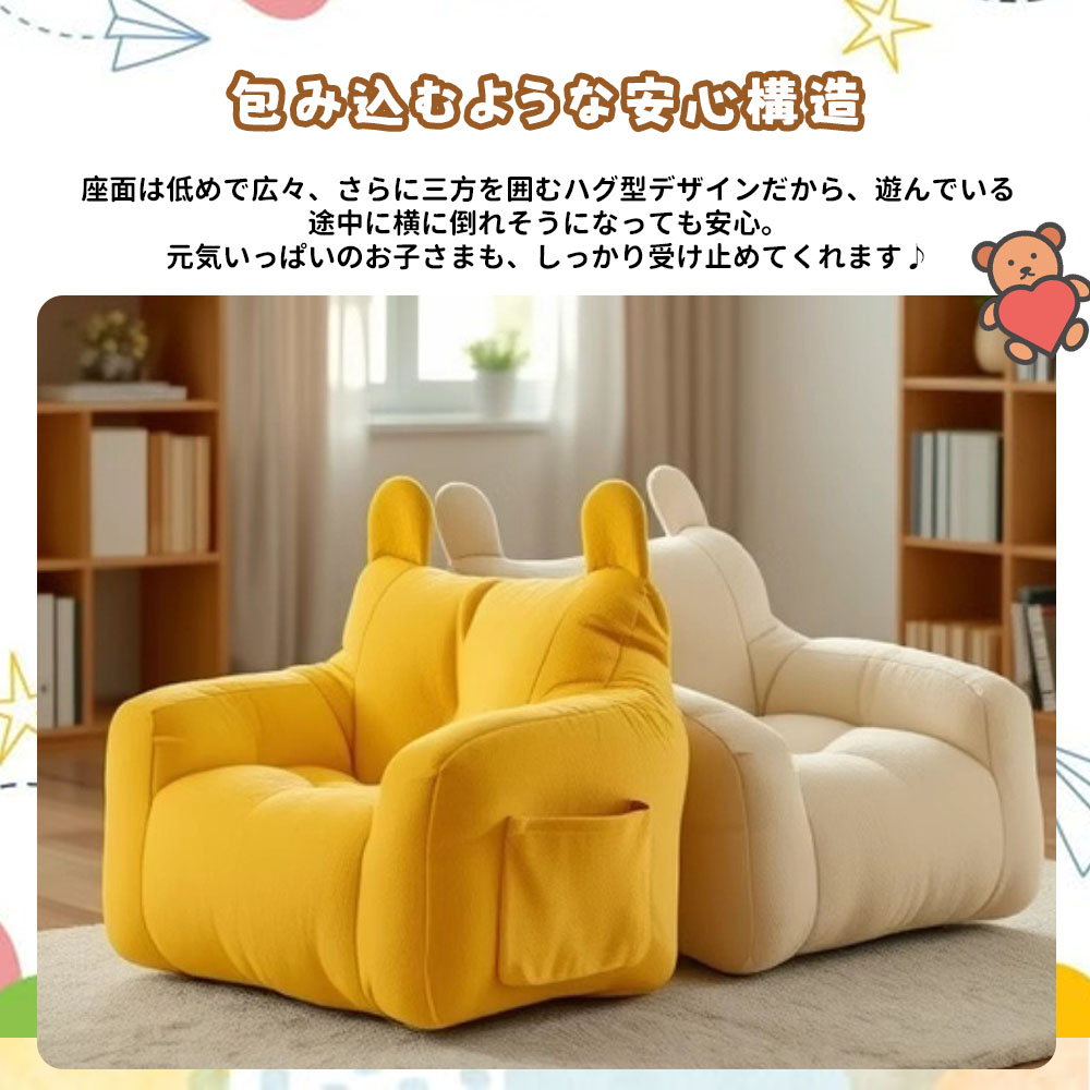 子供用ソファ キッズソファ ミニソファー 一人用 くま型 収納ポケット付き 肌にやさしい ふわふわ かわいい おしゃれ 北欧 子供部屋 YB-02