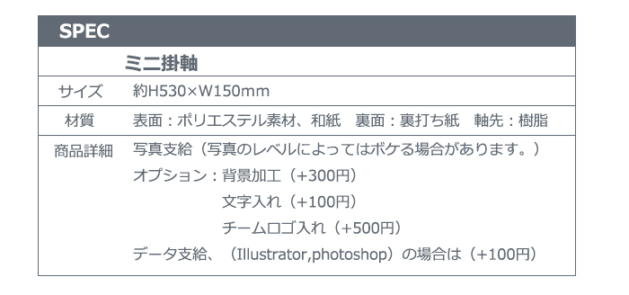 オプションで名入れ、チームロゴ入れ、背景加工などできます。