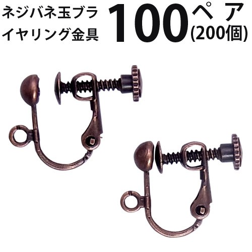 イヤリング ネジバネ玉ブラ 大口パック 100ペア(200個入)( 銅古美)国内メッキ ハンドメイド クラフト パーツ 金具 アクセサリー お徳用