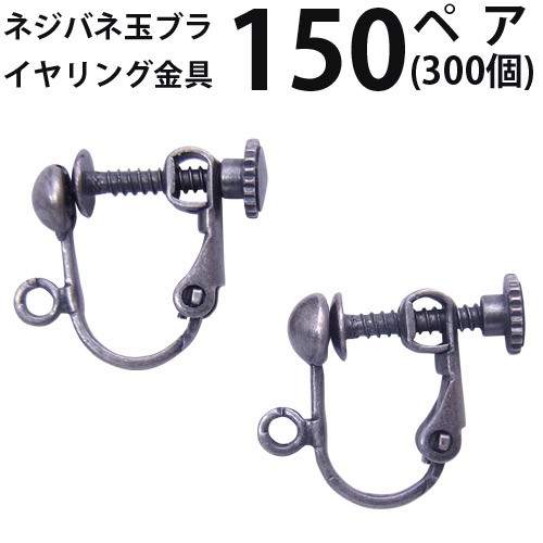 イヤリング ネジバネ玉ブラ 大口パック 150ペア(300個入) ( 銀古美)国内メッキ ハンドメイド クラフト パーツ 金具 アクセサリー お徳用