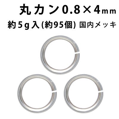 基礎金具 丸カン (0.8×4mm) ( (J)ロジウム(銀色)/国内メッキ) 約5グラム入(約95個程度)