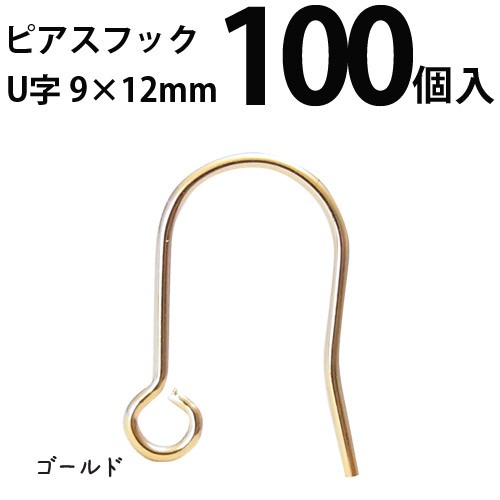 基礎金具 ピアスフック U字(9×12mm) 50ペア(100個入) ( ゴールド) 金具 お得用 パーツ ハンドメイド クラフト アクセサリー