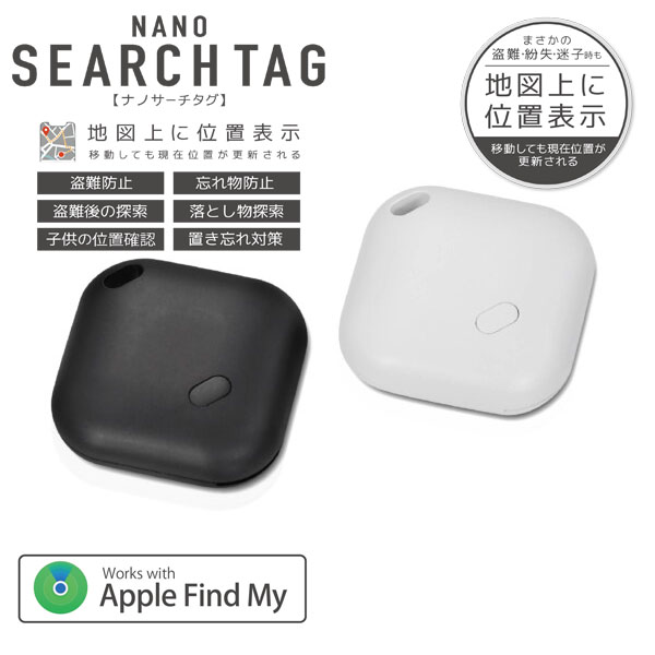 ナノサーチタグ iPhone専用 Apple 白 黒 GPS 子供 迷子 盗難 紛失 白 車のカギ 鍵 アラーム コンパクト ハック