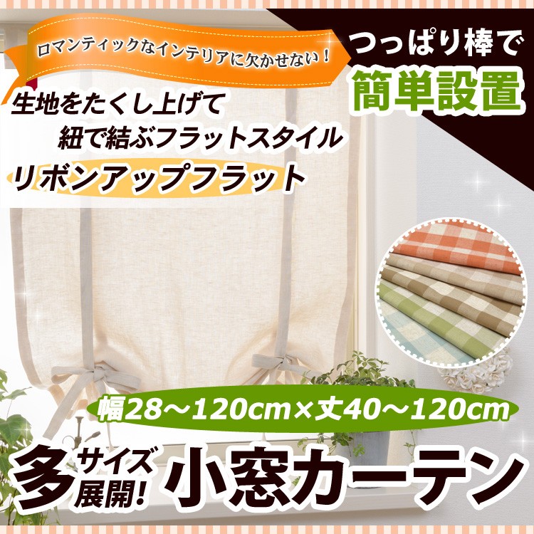 リボンアップフラットカーテン(厚地) 幅28−120cmx丈40−120cm/OUD1190/送料無料