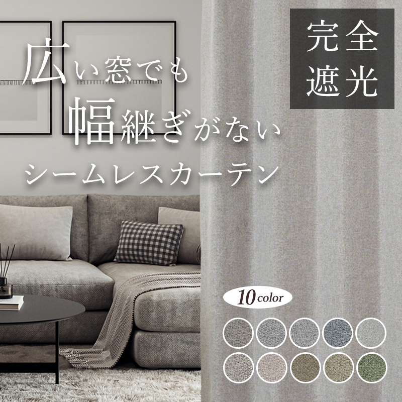 シームレスカーテン オーダー 完全遮光 1級遮光 遮光率100% D-1801 幅55cm-250cmx丈162cm-260cm【1級遮光 遮熱 断熱 保温 形態安定加工】