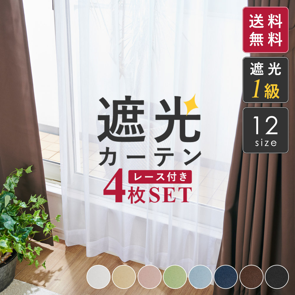 カーテン 4枚組 遮光 1級 無地 遮熱 UVカット 8色 FM 送料無料