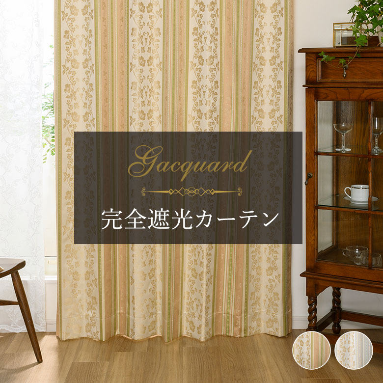 カーテン 1級遮光 ジャガード遮光率100% EC15 幅55cm-250cmx丈201cm-260cm【寝室 ベッドルーム クラシカル レトロ 上品 クラシック】