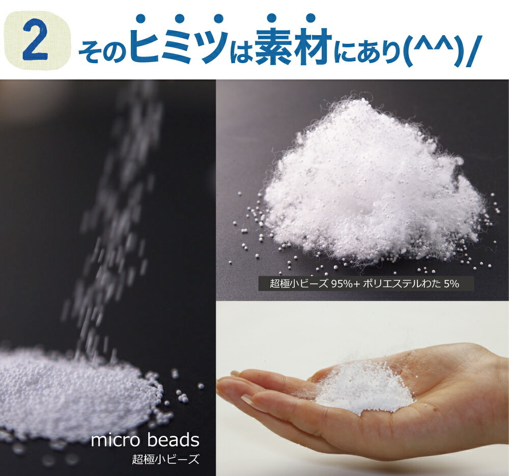 | 中素材:ポリエステル100%(超極小ビーズ95%、ポリエステルわた5%) |