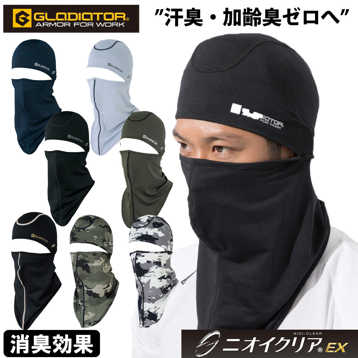 コーコス GLADIATOR G-234 ニオイクリア 消臭バラクラバ ワークキャップ ヘルメットインナー 日よけ対策 UVカット ストレッチ 吸汗速乾