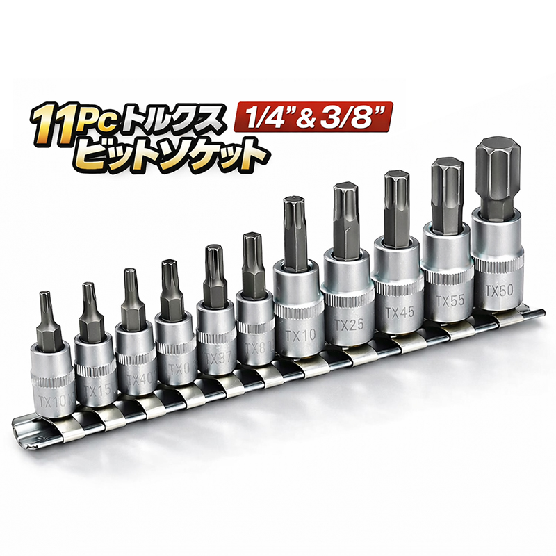 プロ・DIY向けの必須工具、11ピース トルクスビットソケットセットです。