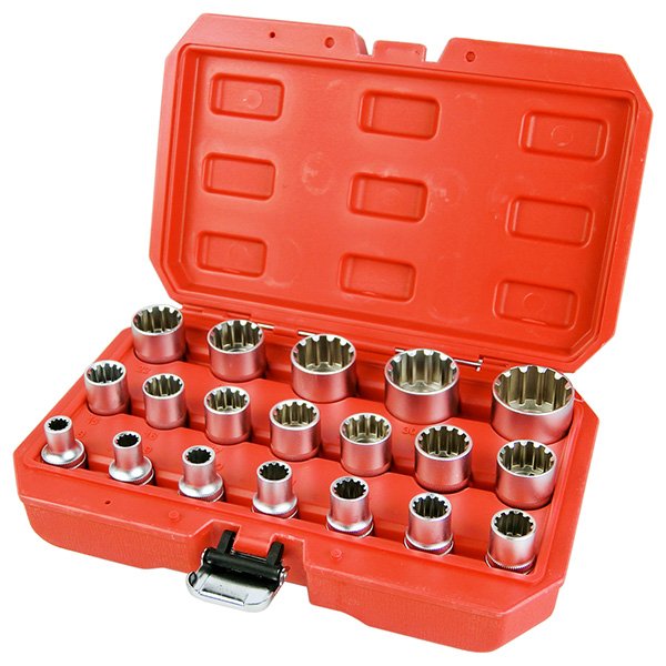 19pc スプラインソケット ソケットレンチ インチ、ミリ、ヘックス、トルクスにも対応 万能ソケット ODGT1-B165