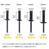 軽量で扱いやすいリベッターと、異なるサイズのプラスチックリベットが含まれており、車両やボートなどのプラスチックパネルの取り付け作業に幅広く対応します。