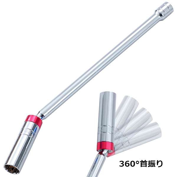 本製品は16mm・12ポイント設計のスパークプラグソケットに、エクステンションバー&ユニバーサルジョイントを搭載。