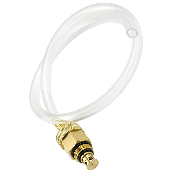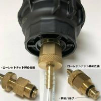 使用方法も簡単、-オイルフィルターハウジングのドレンバルブに本ツールをねじ込み、ローレットナットを締めていけば廃油が流れてくる。