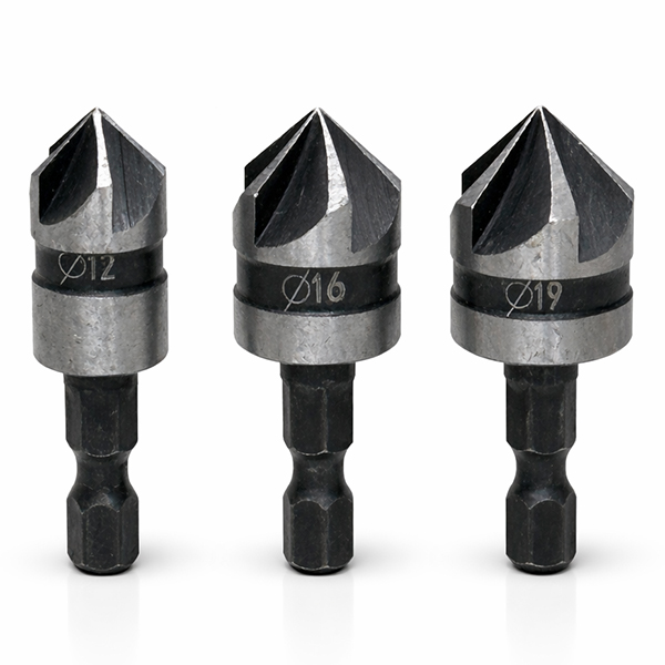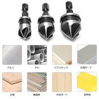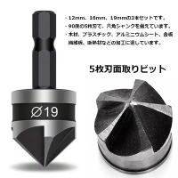 面取りカッター 六角軸 90度 5枚刃 3本セット 12 16 19mm 皿取り錐 木工 バリ取り 炭素鋼 ODGN2-T829