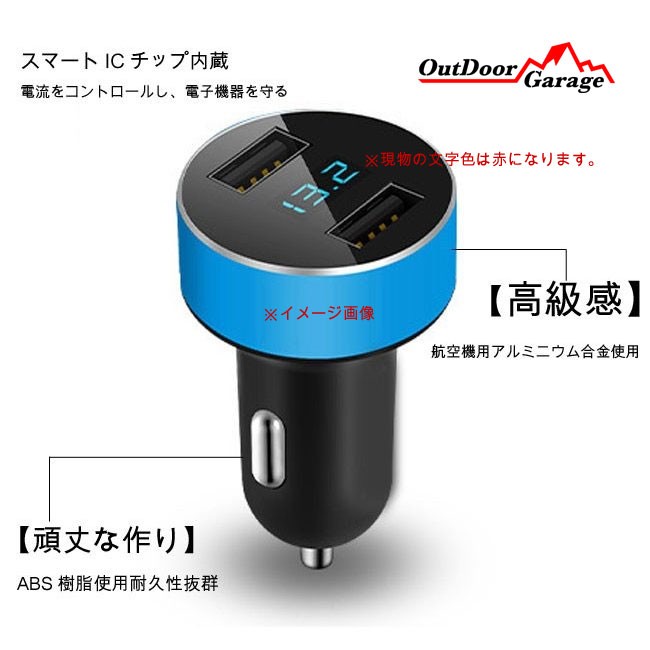 青色 3.1A高出力 電圧測定表示 シガーソケットUSB充電器&デジタル電圧計 ODGN2-YZC001