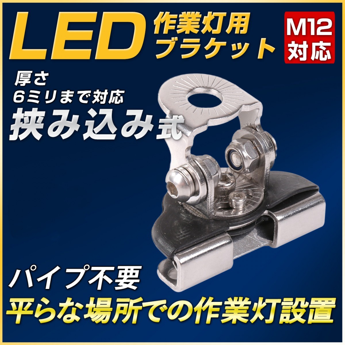 LED作業灯向け 自動車・機械へのワークライトの設置をサポート 挟み込み式ブラケット(M12ボルト対応)