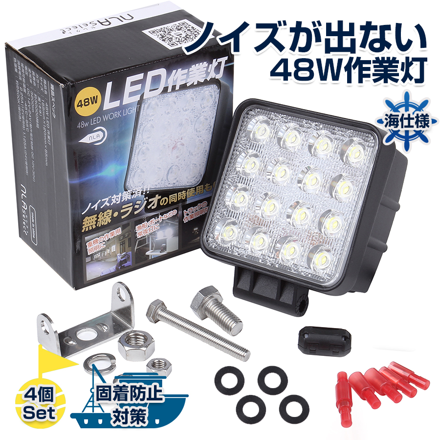 led照明 48W 4個 12v 24v 船舶 作業灯 プレジャーボート 耐サビ仕様ステー 強力集魚灯
