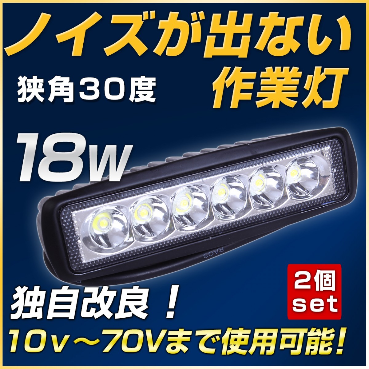 led作業灯 18w 2個 12v 24v バックライト タイヤ灯 軽トラ ワークライト ノイズ対策済