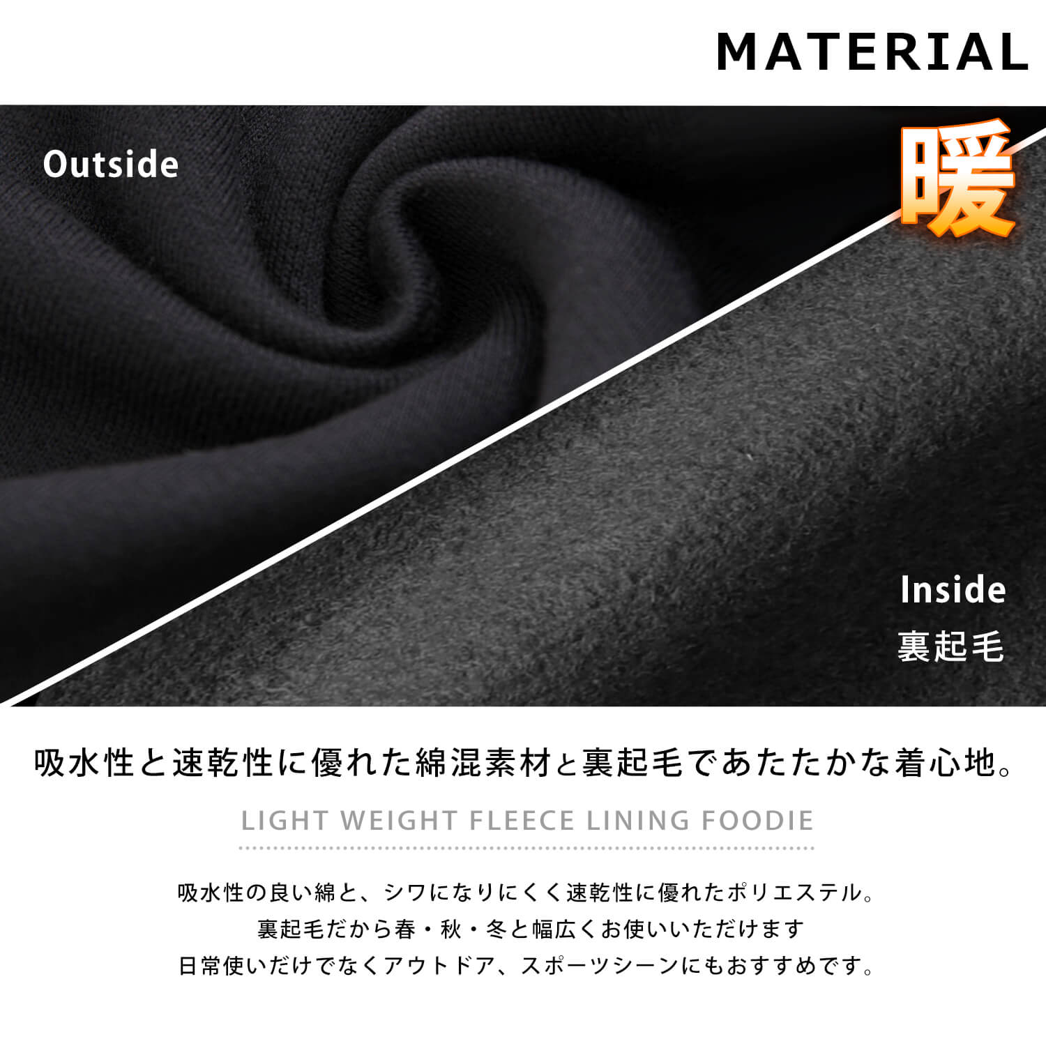 | 素材 | ポリエステル80% 綿20%(裏起毛) |