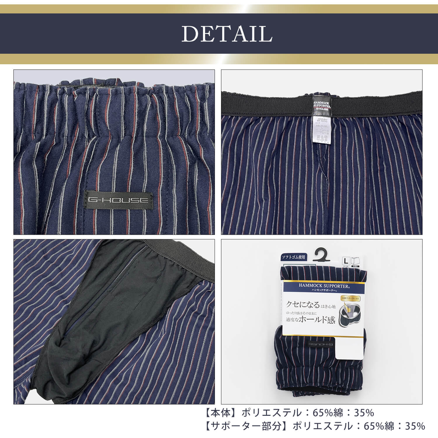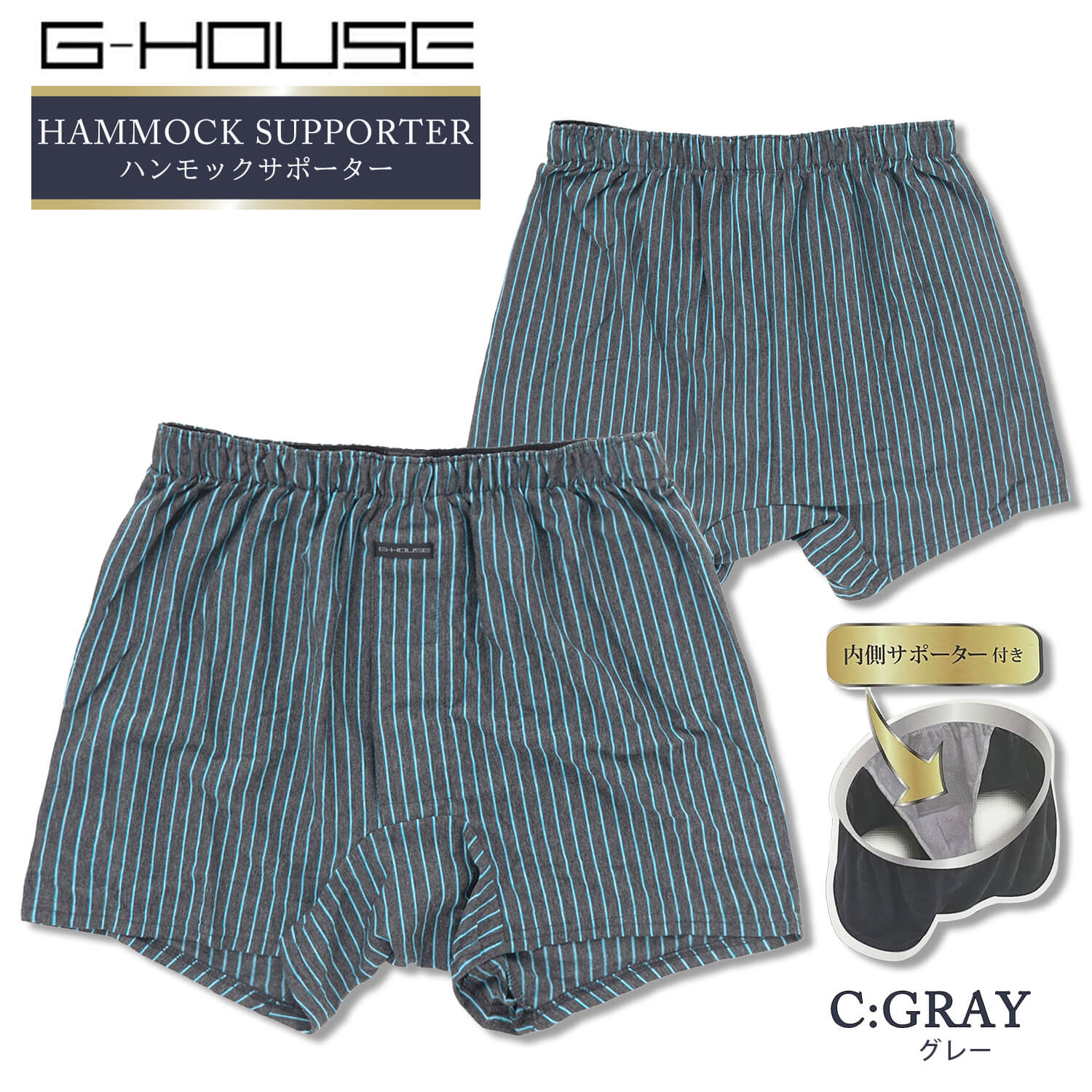 | 【G-HOUSE/ジーハウス】ハンモックサポーター付き トランクス ニット 前開き ストライプ柄 綿混素材 吸汗速乾 M L LL 下着 パンツ k251312 | |