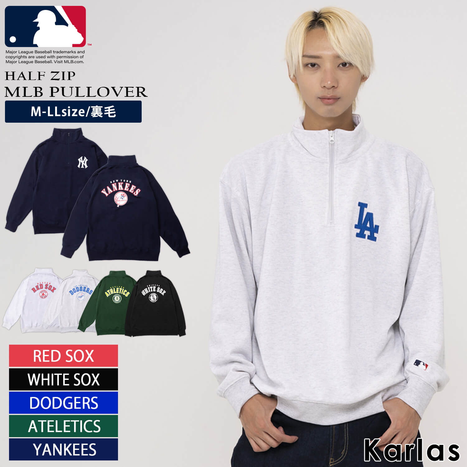 | 商品名 | 【MLB/メジャーリーグベースボール】WEB限定 エムエルビー ユニセックス ロゴ刺繍 ハーフジップトレーナー ハイネック プルオーバー FH8165 |