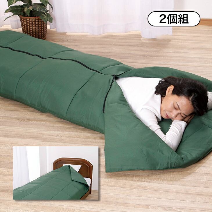 寝袋 シュラフ 2個組 洗える 掛布団にもなる 3WAY寝袋 封筒型 掛け布団 グリーン 撥水加工 軽量 暖か 冬用 車中泊 防災用 アウトドア キャンプ 丸洗い可能