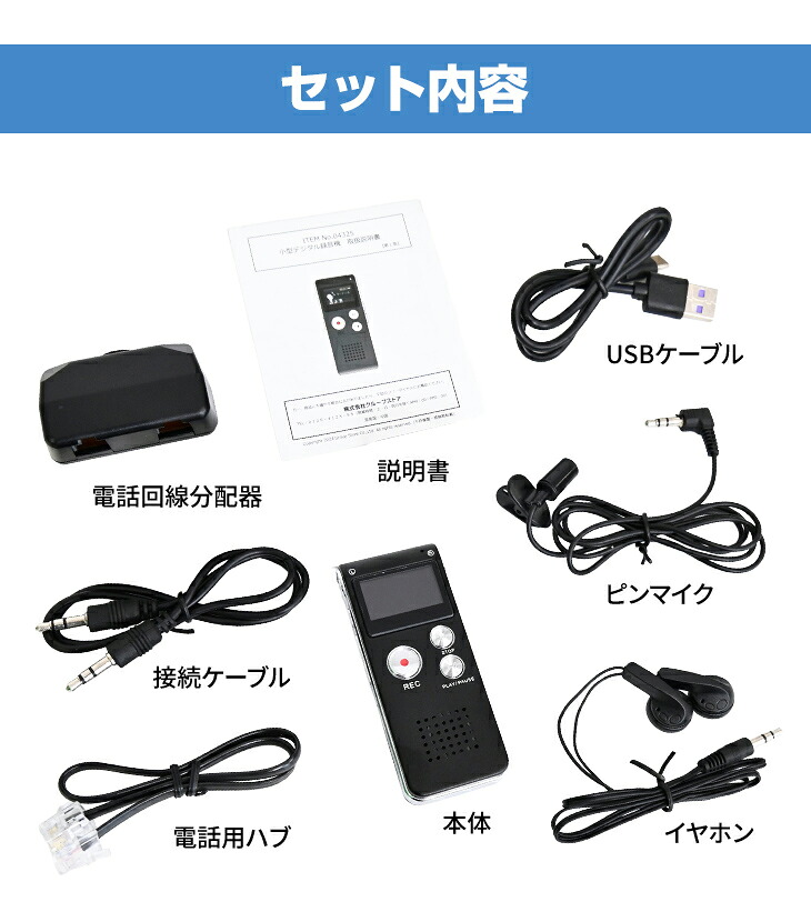 ●付属品/電話用ハブ、接続ケーブル、専用アダプタ、イヤホン、ピンマイク、USBケーブル、日本語説明書