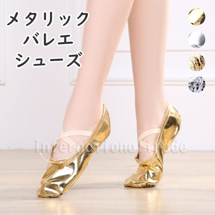 バレエ シューズ メタリック キラキラ 軽量 ソフトバレエシューズ ダンス 練習 舞台用 おしゃれ かわいい フラットシューズ レッスンシューズ 靴