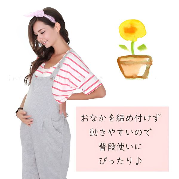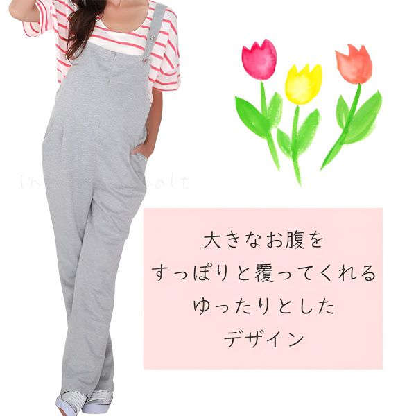 マタニティ生活をより豊かに、快適に過ごせる一着として、このオールインワンサロペットをぜひお試しください