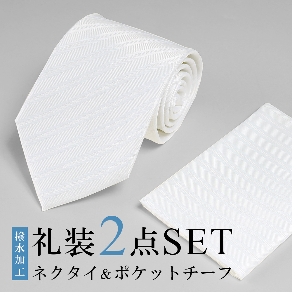 ネクタイ 結婚式 ポケットチーフ 2点セット フォーマル 礼装ネクタイ 撥水加工 メンズ ストライプ 白ネクタイ 冠婚葬祭 セレモニー 披露宴