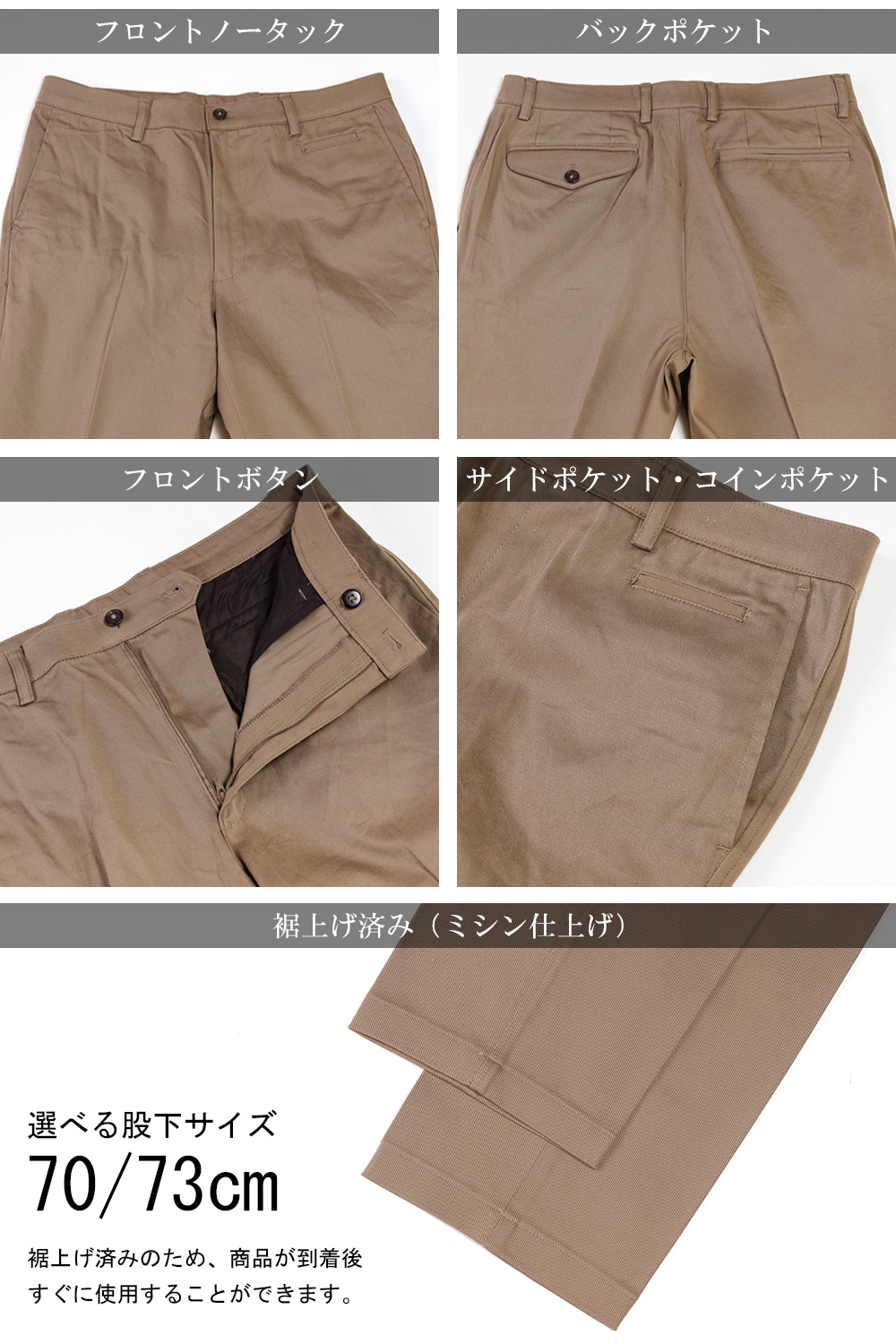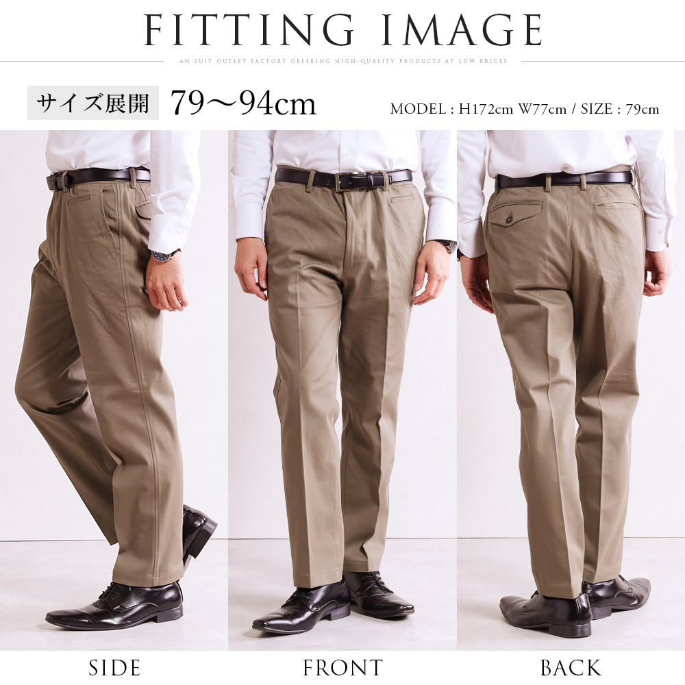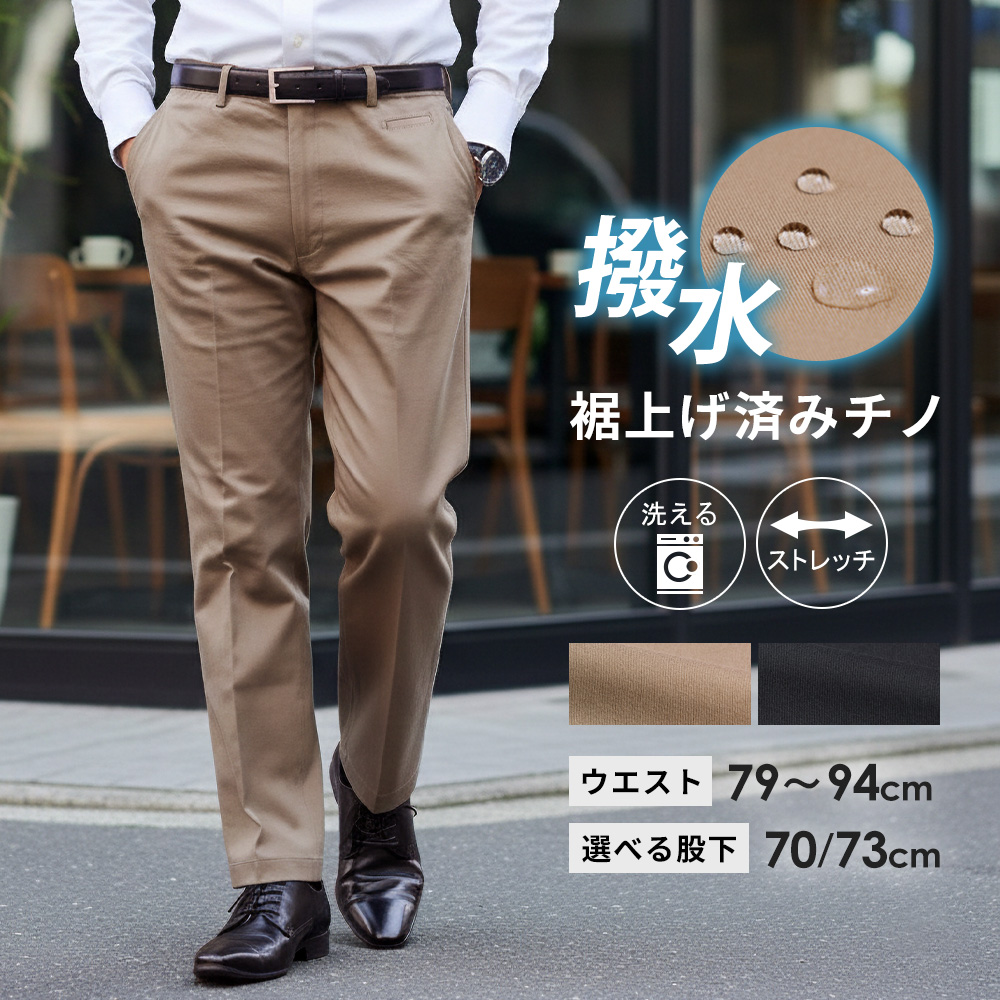 チノパンツ 裾上げ済み スラックス コットンパンツ メンズ ノータック ストレッチ 洗える 綿パン ビジネス パンツ ズボン オールシーズン 春 夏 秋 冬 クールビズ