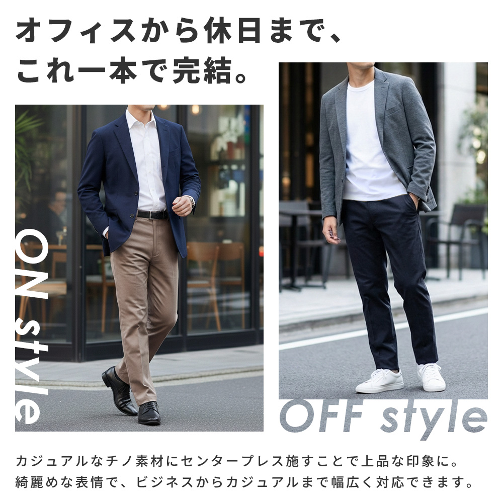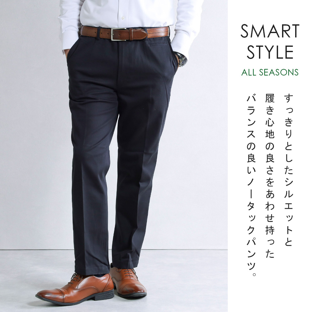 メンズファッション チノパン ノータックスラックス ビジネスパンツ カジュアルパンツ ゴルフパンツ 標準〜スリム レングス 紳士 伸びる 伸縮 ウォッシャブル ビジカジ オフィス 紺 ベージュ 無地 ビジネススラックス カジュアルスラックス スマートスタイル