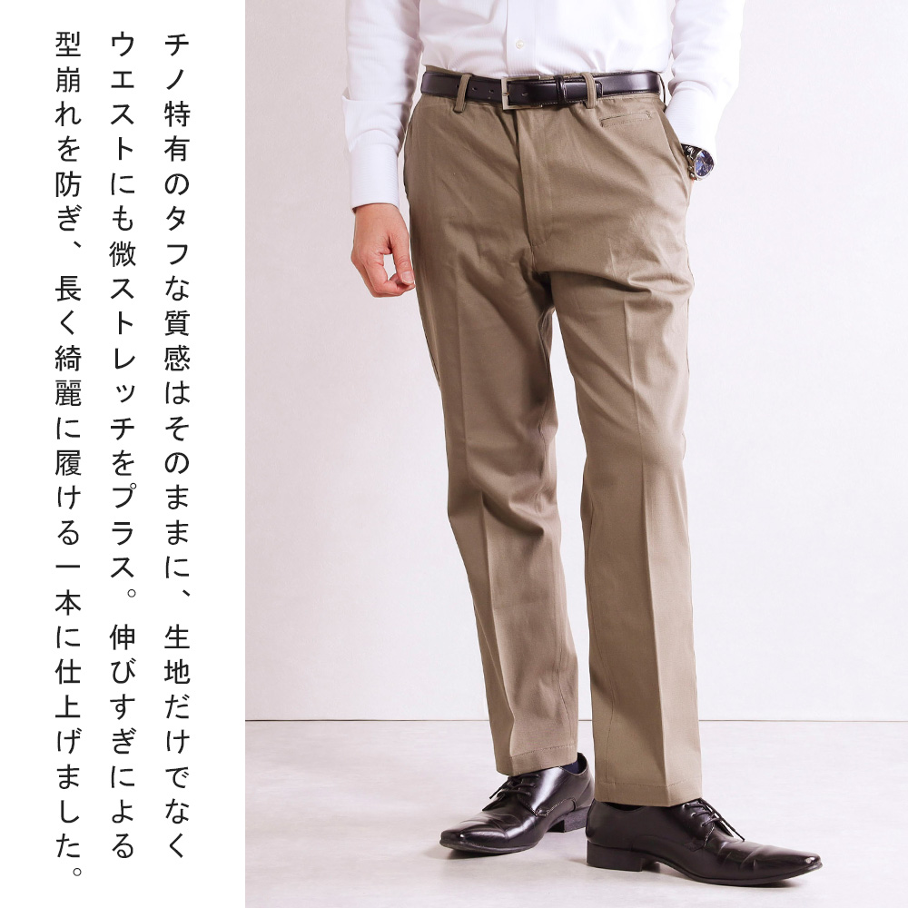 チノパンツ 裾上げ済み スラックス コットンパンツ メンズ ノータック ナチュラルストレッチ 洗える 綿パン カジュアル ビジネス パンツ 春 夏 秋 冬