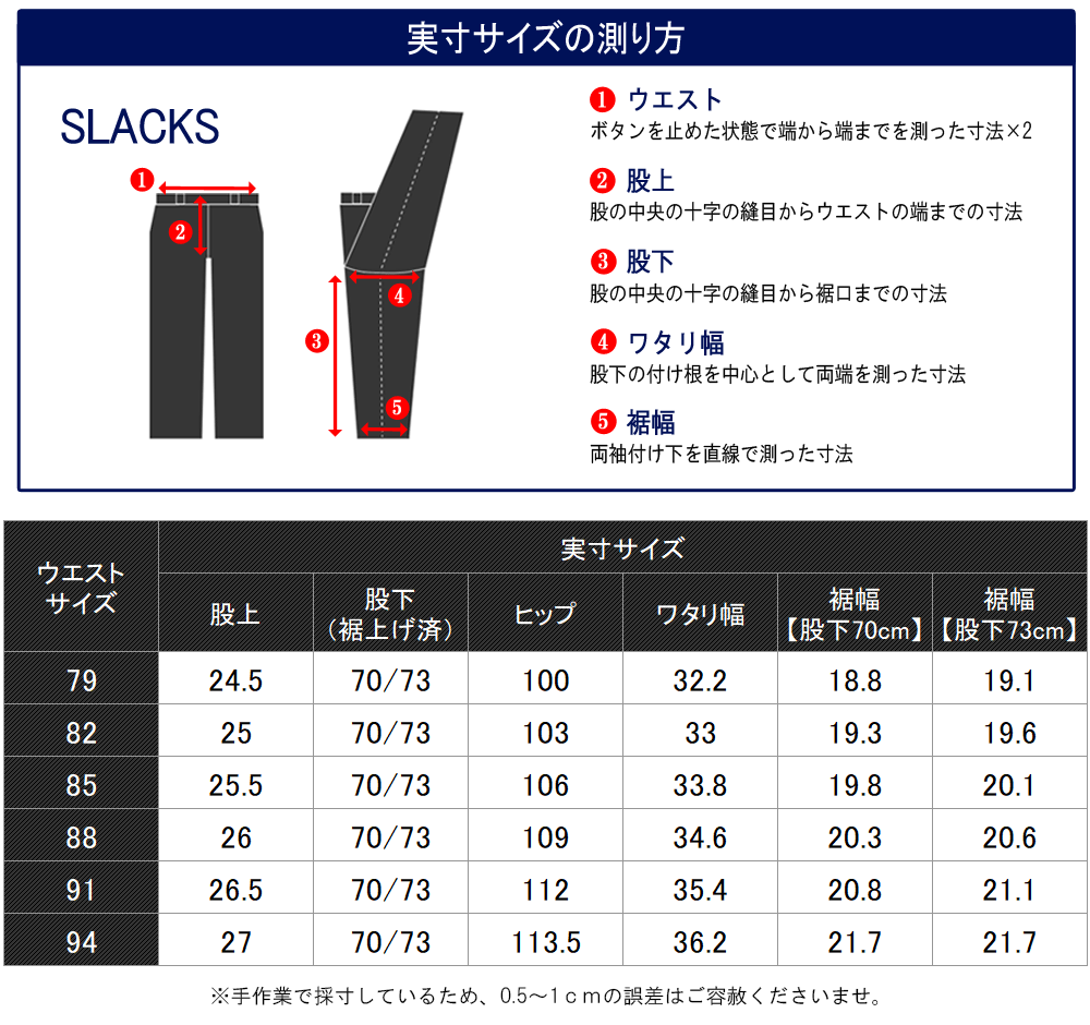 ※裾上げの再直しについては承っておりません。