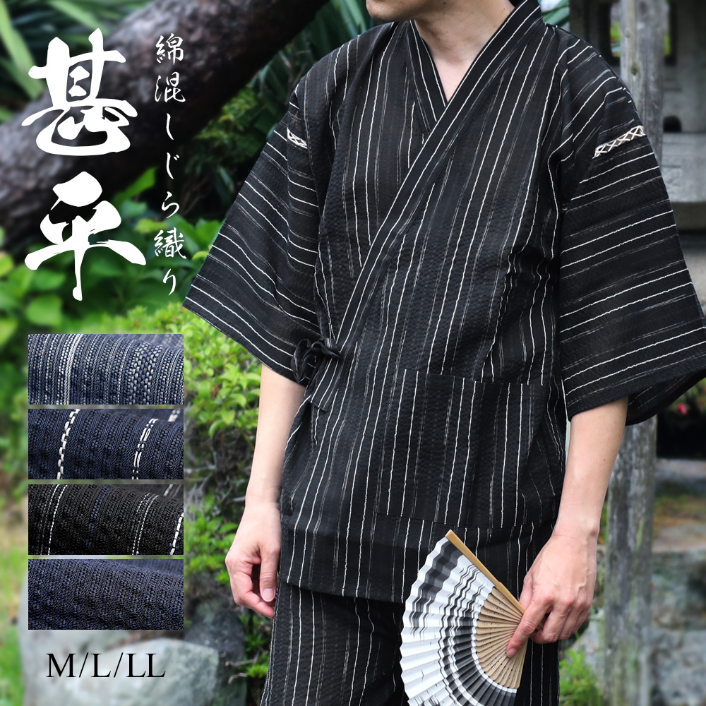 甚兵衛 着物 浴衣 しじら 無地 縞 ストライプ 黒 紺 青 ブラック ネイビー ブルー お祭り 花火大会 夏祭り 70代 60代 50代 40代 30代