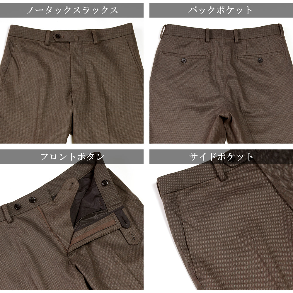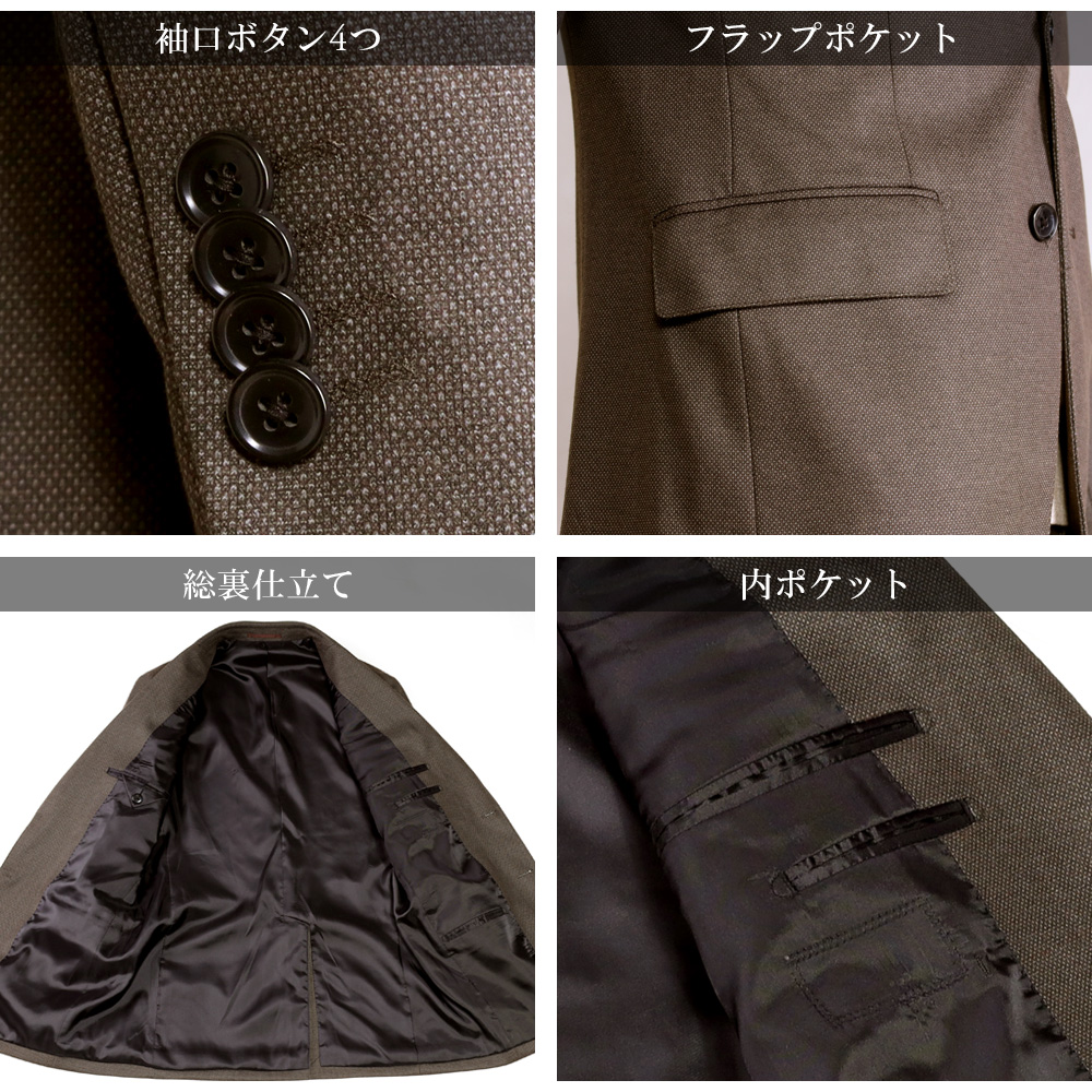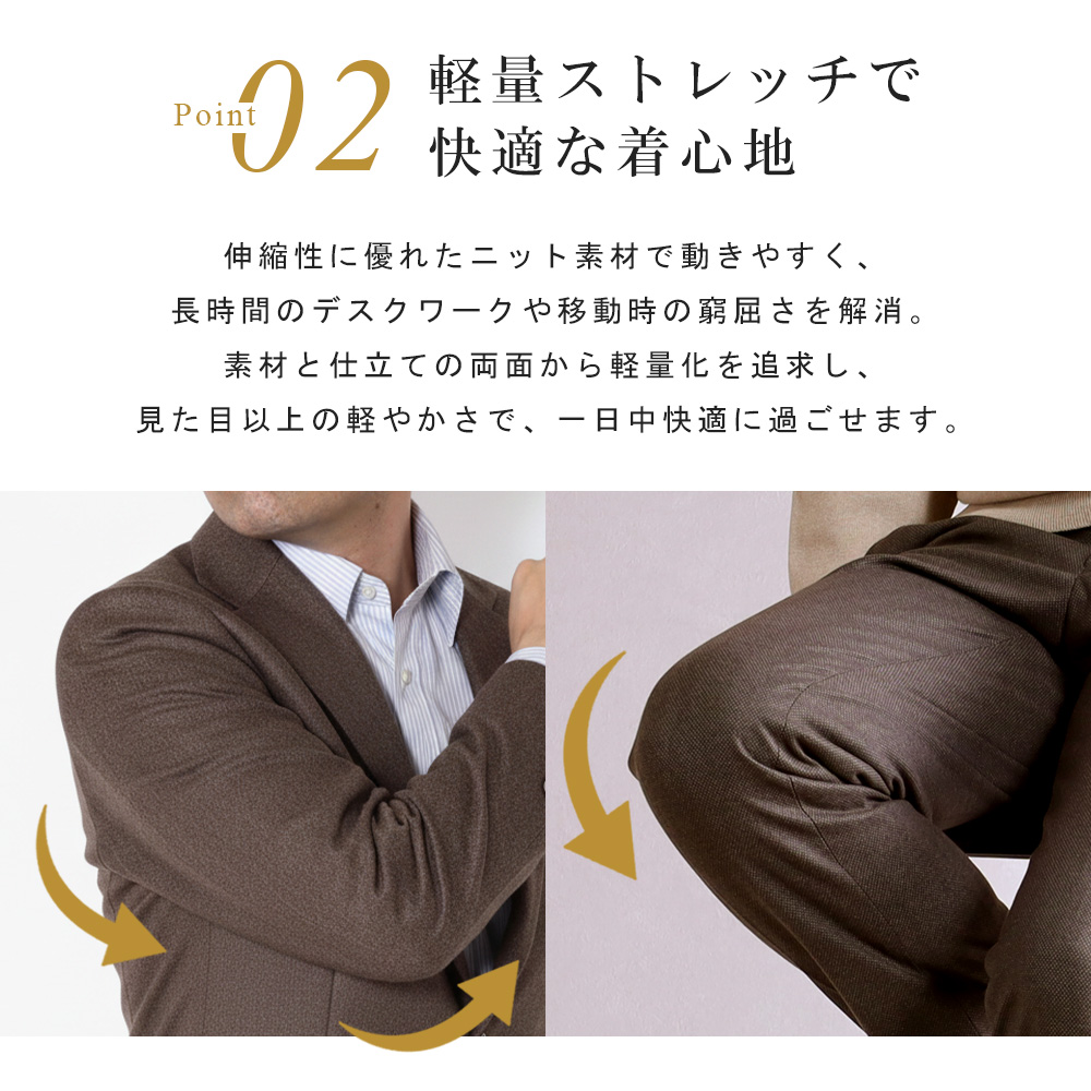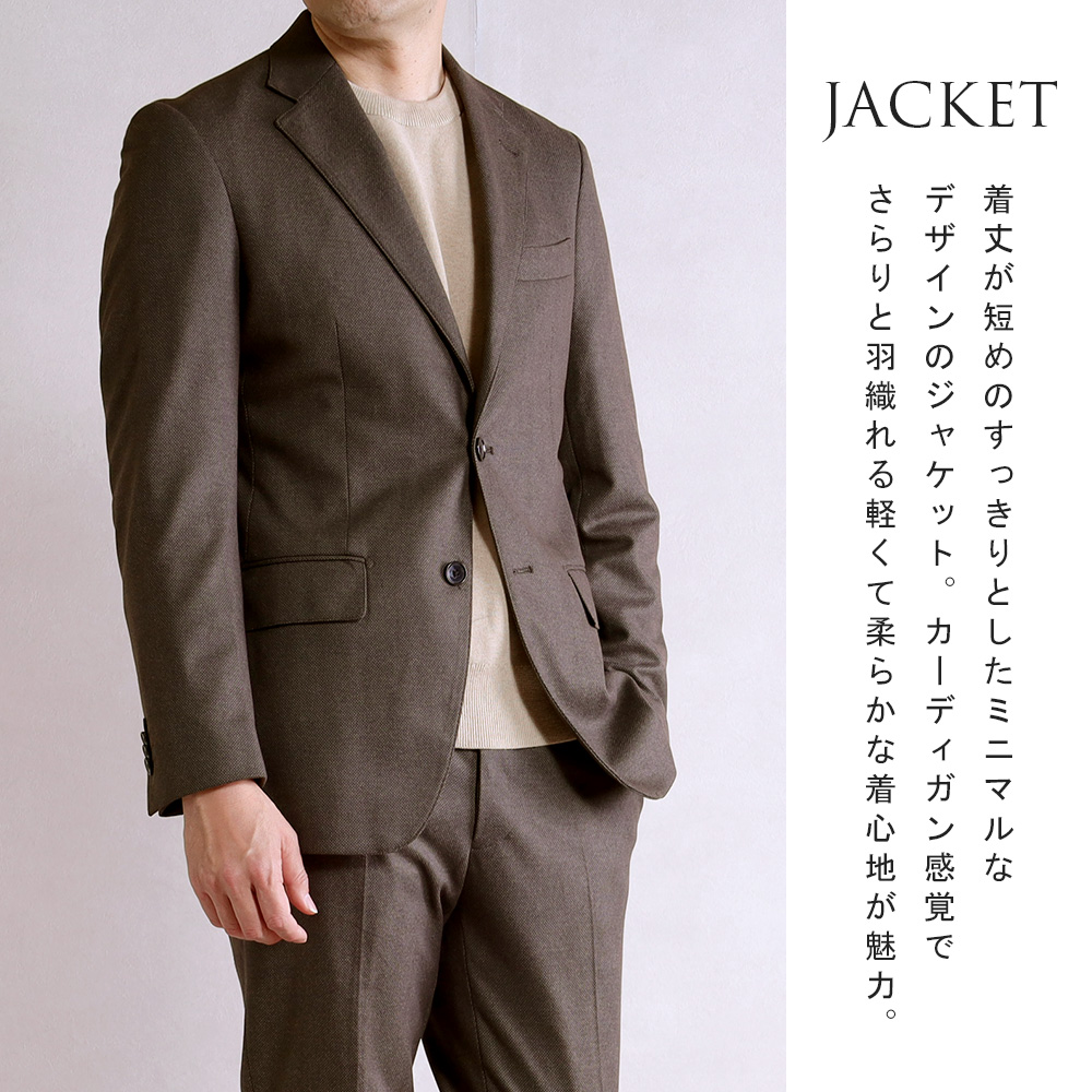 アウトレットスーツ オフィス カジュアル ゴルフ バーズアイ調 ニット素材 しわになりにくい 軽量 暖かい 茶 スマートスタイル 標準 スリム リラックス 2ボタン シングルスーツ メンズファッション 20代 30代 40代 50代 伸縮 伸びる オシャレ 紳士服 男性用 テレワーク シングルジャケット 旅行 出張 アウトレット ストレッチパンツ
