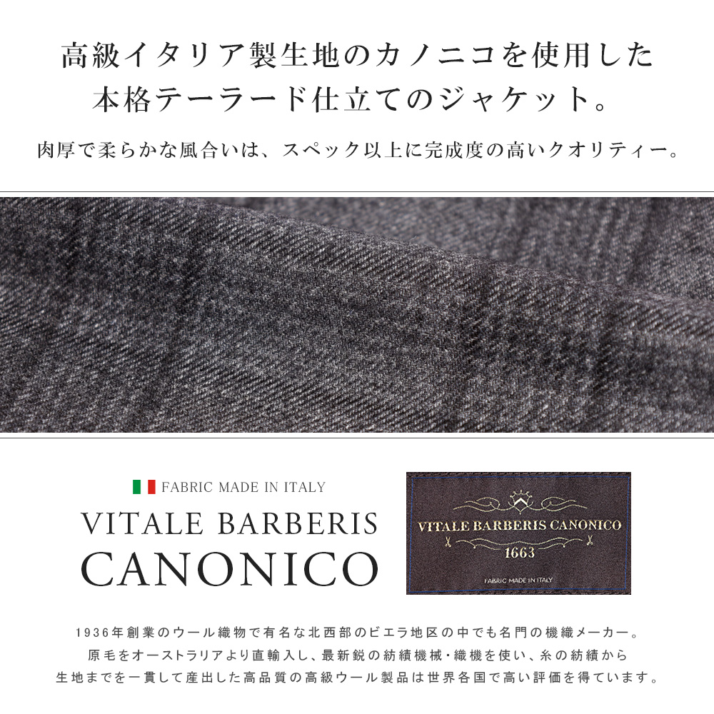 ジャケット メンズ CANONICO カノニコ イタリア生地 テーラードジャケット インポート生地 ウール 秋冬 2ツボタン ビジネスジャケット