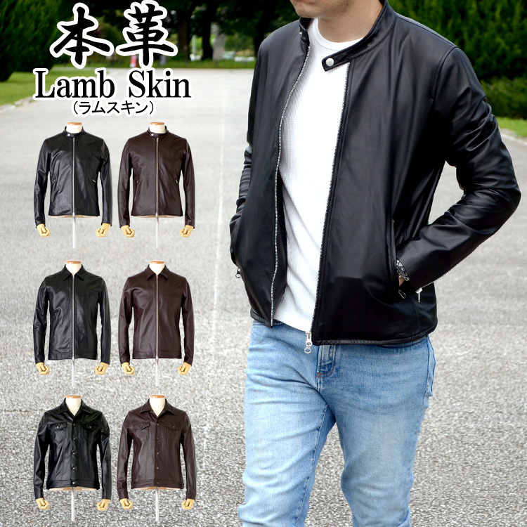 本革ラムレザー 選べる3タイプ ライダースジャケット ライダース Gジャン メンズ ジャケット 本革ジャケット 革ジャン 皮ジャン 本皮ジャンパー
