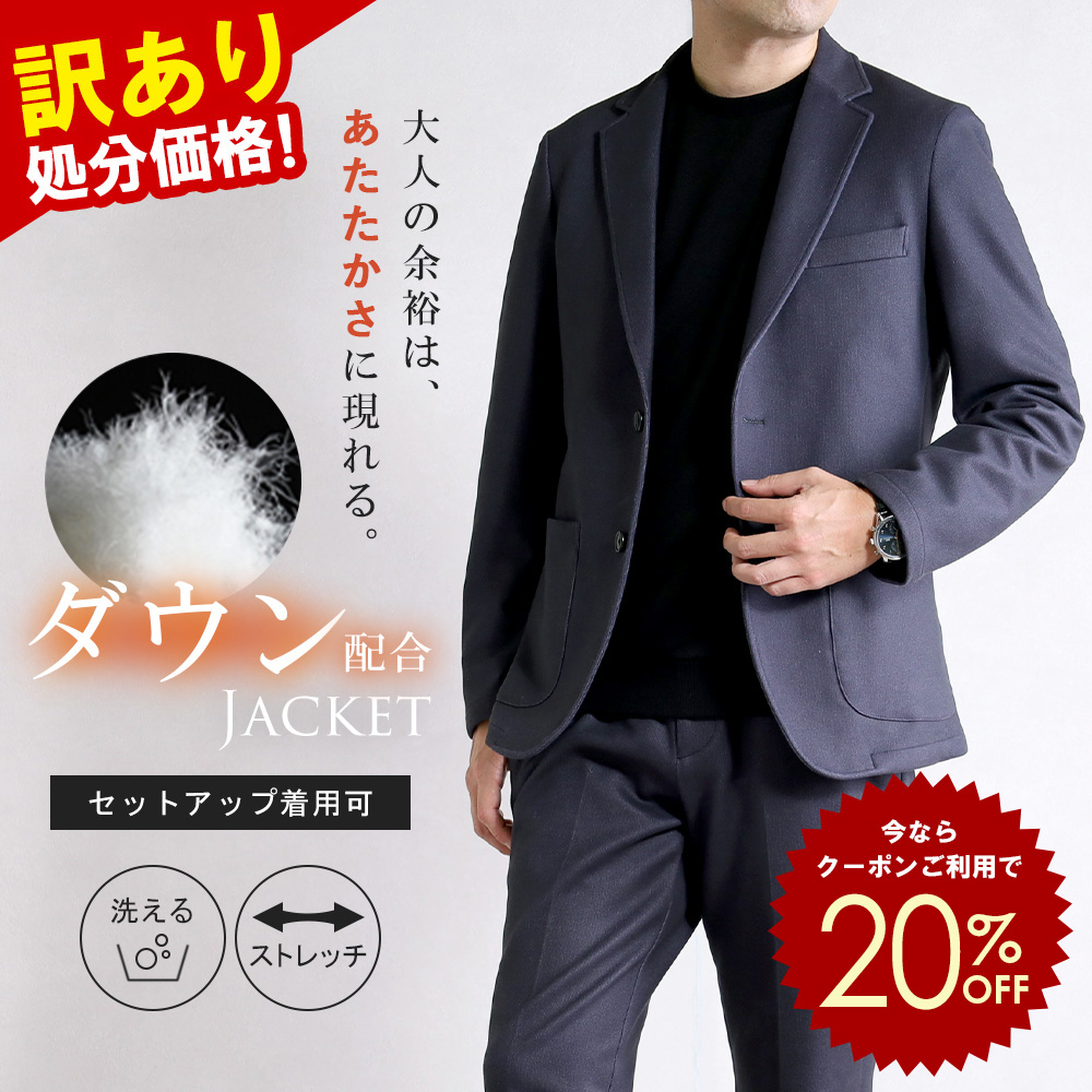 ダウンファブリック ポンチ素材 大人 リアルダウン 羽毛 あたたかい ウォームビズ 保温 アウトレット メンズジャケット ビジネスジャケット ビジカジ オフィス カジュアルジャケット 紺 標準体型 ゆったり BB体 リラックス 2ボタン シングルジャケット 伸びる 軽量 洗える ハンドウォッシャブル メンズファッション 20代 30代 40代 50代 伸縮 しわになりにくい 冬服 オシャレ 紳士服 男性用 テレワーク WEB会議 ゴルフ ジャージ ジャケパン 旅行