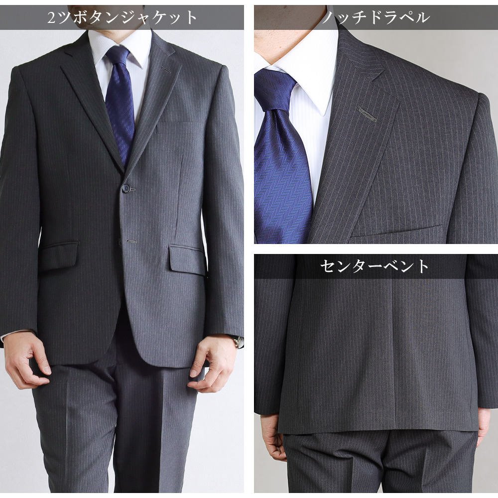 メンズスーツ シングルスーツ ストライプ柄 灰色 ベーシックスタイル ビジネス 紳士 標準〜ややゆったり 激安 安い 卒業式 入学式 オフィス 結婚式 成人式 入園式 卒園式 入社式 新生活 新社会人 メンズファッション 2ボタン AB体 BB体 BE体 4号 5号 6号 7号 20代 30代 40代 50代 ストレッチ素材 伸縮 紳士服 男性用 背広 通勤 ウォッシャブル 洗濯可能