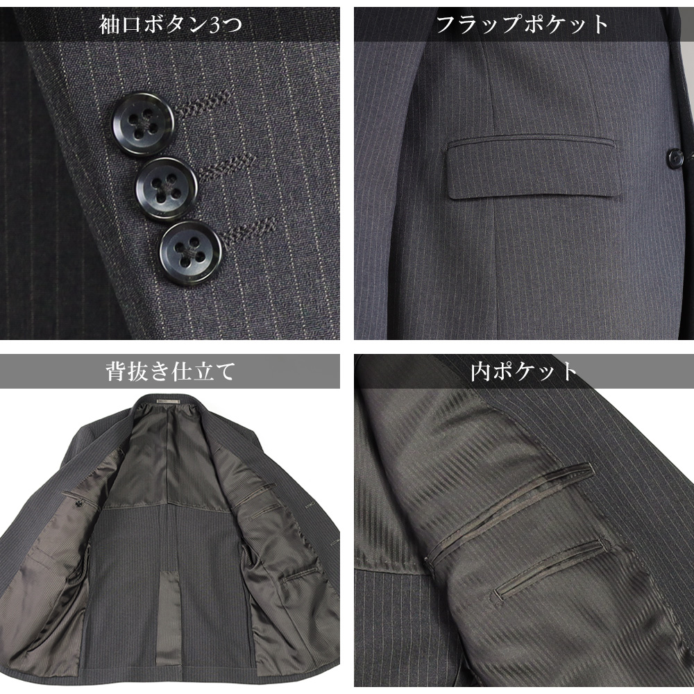 訳あり 処分価格 スーツ メンズ ビジネススーツ 洗える ストレッチ 2つボタン シングルスーツ アウトレットスーツ グレー ストライプ オールシーズン 春 夏 秋 冬