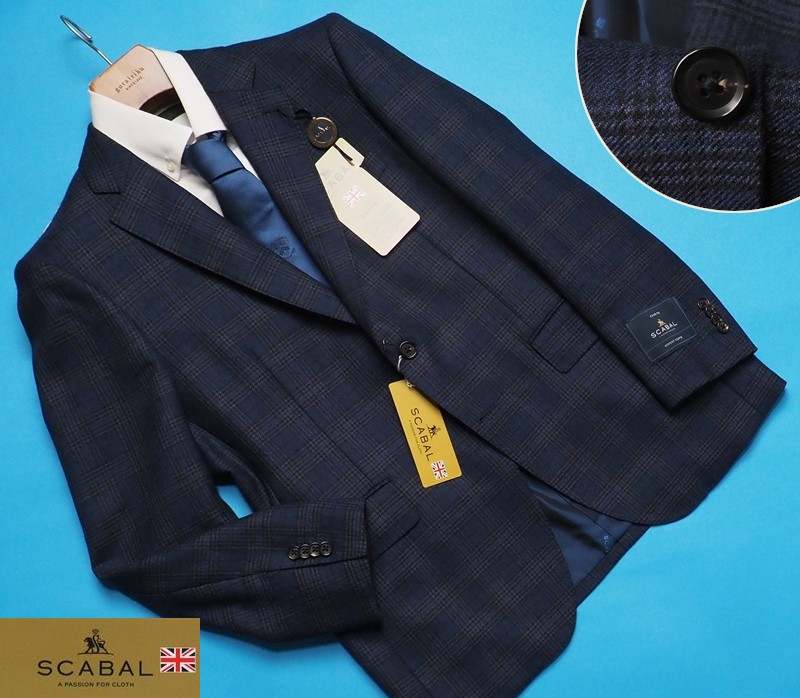 ファブリックは英国製生地の中でも最高峰ランクで、「ビンテージ生地の王者」と言われるスキャバル社のウール100%ツイード調生地を使用。職人たちの手作業によって、織り上がった生地にペーパープレス仕上げを施すなど、生地の輝きや着心地の良さを高めるための努力を惜しまないことも、ヴィンテージ生地の王者と呼ばれる所以です。既製品では無く、オーダーメイドに供される最高級ランクの生地になります。その証として内ポケットに生地タグの耳が用いられています。